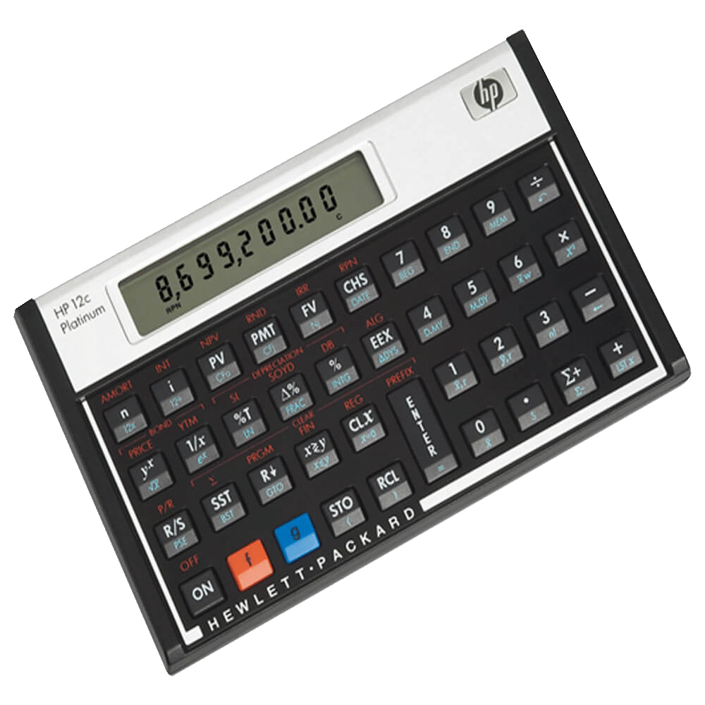 More powerful and capable than ever, the HP 12c Platinum Financial Calculator is up to 6 times faster with 4 times more memory than the original HP 12c. Choose between RPN* or algebraic entry-system logic, handle up to 80 cash flows and utilize over 130 built-in functions.